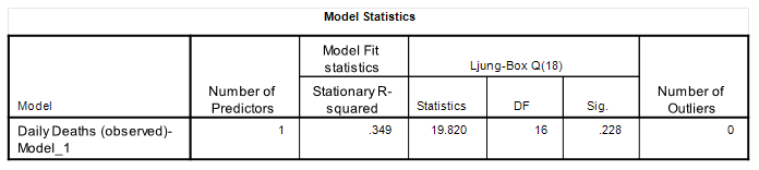 What we’ve got in the last slide are two time series, one representing what actually happened and the other representing the underlying seasonal pattern as estimated using the years 2017 – 2019. This is when a little bulb went BING! in my head as I realised the underlying seasonal pattern could be submitted as an independent variable in ARIMA modelling of the observed data to yield a predicted set of counts that utilise the time-dependent variation from both series. If this kind of talk hurts anyone’s brain think of the mean daily death series as the scaffolding we’re going to use in order to build the building.