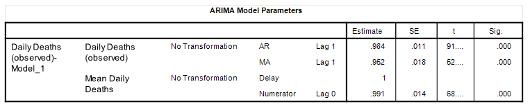 Geeks amongst us may relish the following ARIMA(1,0,1) outputs: