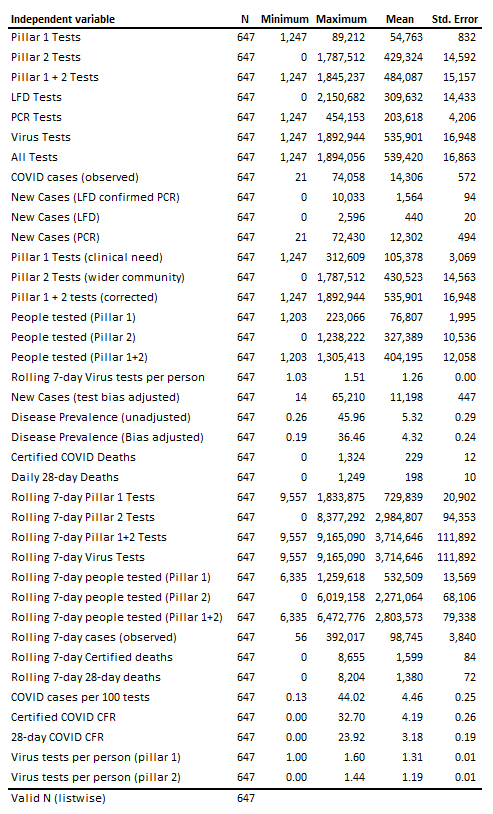 The final component is an oddball centred on virus tests per person under the pillar 1 scheme with a smattering of modest coefficients across clinical and community testing data. Virus tests per person is one of those hidden biases that I like to bang on about and it’s great to see my ranting supported!