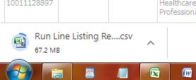 If the Exporting to CSV ‘clock’ takes more than 15 seconds to tick away then keep your eye on the file size as it is saved to hard disc. Here’s a snapshot of a hefty file at a count of 67.2MB that finally reached a size of 85MB….