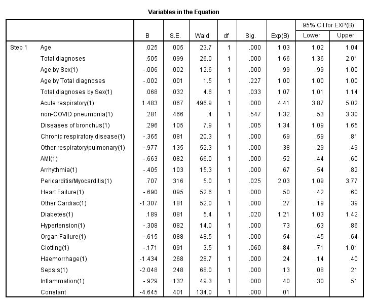 Thus we see that COVID as an acute respiratory condition is pretty much where it’s at for those who go on to die, but what we also need to pay attention to here are pre-existing diseases of the bronchus that may be exacerbated, especially if these induce sepsis (and thus elevated risk of multi-organ failure). Interestingly, incidence of sepsis was strongly negatively correlated with COVID death (OR=0.13, 95%CI[0.08;0.21], p<0.001), along with organ failure (OR=0.54, 95%CI[0.45;0.64], p<0.001). Ideally clinicians would chew this over for us but what is clear is that nothing is clear, and we must take those case studies with a pinch of salt even when published in prestigious journals. I can hear our lead cardiac surgeon asking “so what were they doing wrong?” to which a colleague would respond, “so what are we getting right?”. Whatever the NHS Trust under study was doing between Feb and Dec 2020 sepsis and organ failure was not a feature of COVID death!