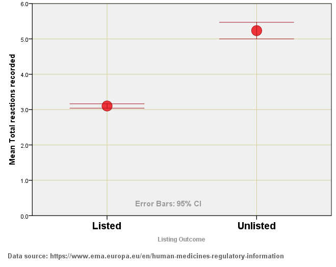 There is a strong association between the total reaction entries made on a patient record and reluctance for Cominarty to be listed as a suspect drug (p<0.001; Mann Whitney U-Test, n=13,354) such that healthcare and non-healthcare professionals would appear reluctant to append Comirnaty as suspect drug to the records of those with more complex conditions. We appear to have unearthed yet another source of reporting bias!