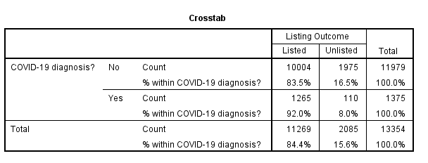 There is a reluctance for Cominarty to be listed as a suspect drug for those not suffering from COVID-19 (or at least returning a positive test result), with a crude odds ratio of 2.1 (p<0.001; Fisher’s Exact Test, n=13,354). This result is not entirely unexpected and may offer modest evidence of negative benefits.