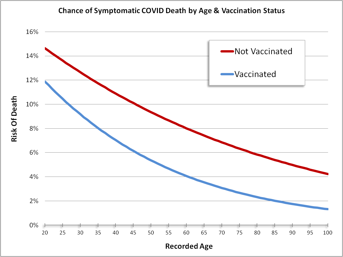I find this totally and utterly wacky baccy. Forget vaccine status for the moment - how is it possible that risk of symptomatic death decreases with age? The word is wergh - time for some cogitation!