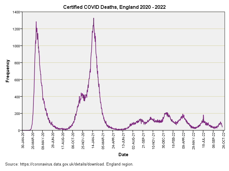 Two big peaks and that’s yer lot. Pandemic over. From June 2021 onward we seem to have slipped into endemic territory, and I am surprised at the lack of a 2021/22 winter season peak for what is supposed to be a member of the coronavirus family. I suspect old-fashioned influenza made a come back and crowded the weaker COVID strains out - a Darwinian theory on the micro scale that totally fascinates.