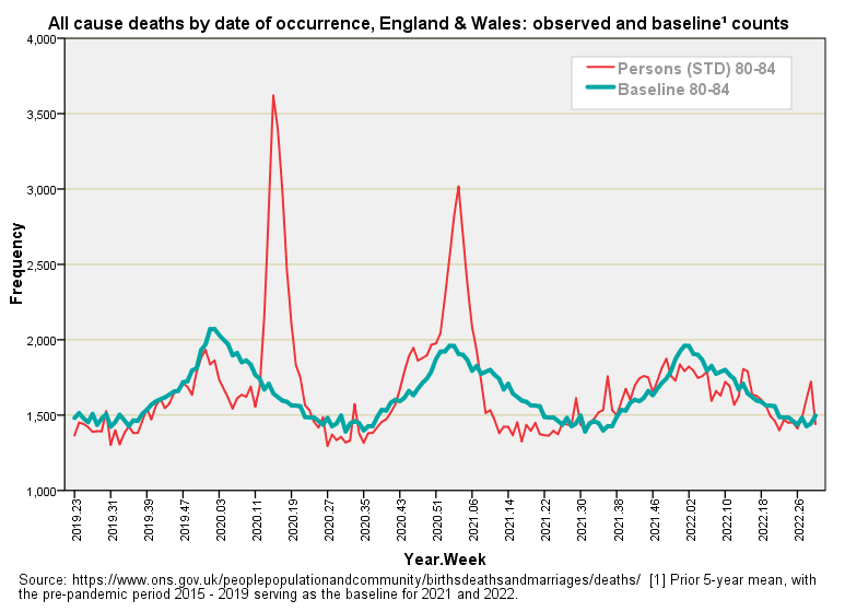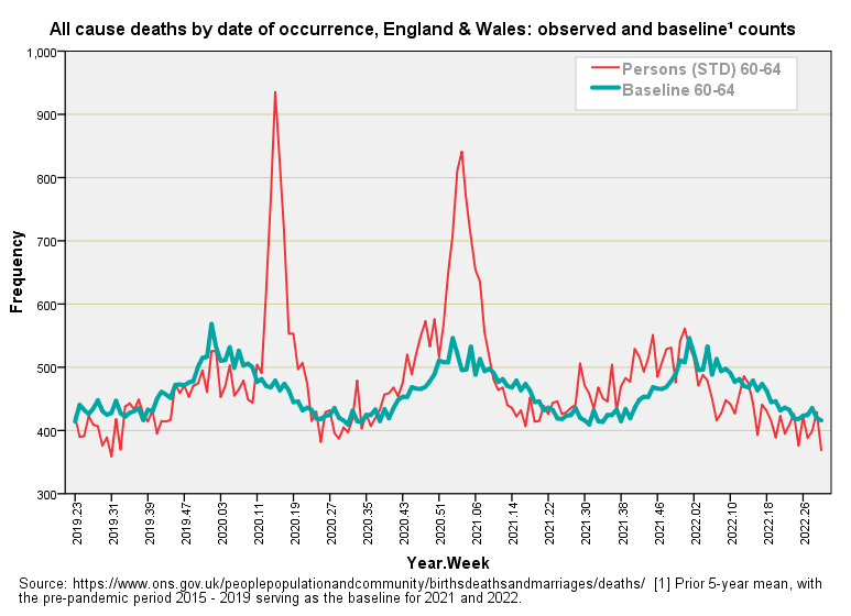 The pre-covid years are showing around 400 all-ages deaths a quarter, but suddenly this jumps to 523 in Q2, 2022.