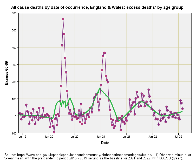 To my eyes, the early 2021 excess peaks are surprisingly not staggered by age group, which one might expect if this were vaccine harm.