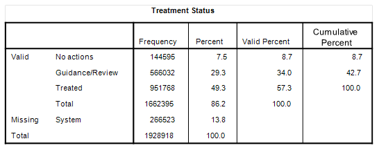 In terms of decision to treat we can divide actions into three basic categories: no action undertaken; guidance and case review only; treatment given. Here’s how those 1,928,918 admissions to the department break down for the period January 2017 – September 2021: