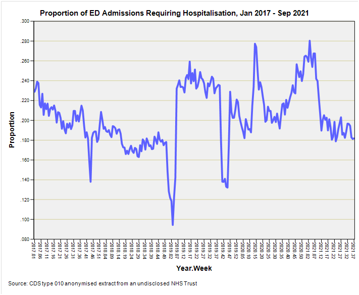 Further analysis of an anonymised data dump of 1.9 million admissions records to the emergency departments of an undisclosed NHS Trust for the period Jan 2017 – Sep 2021